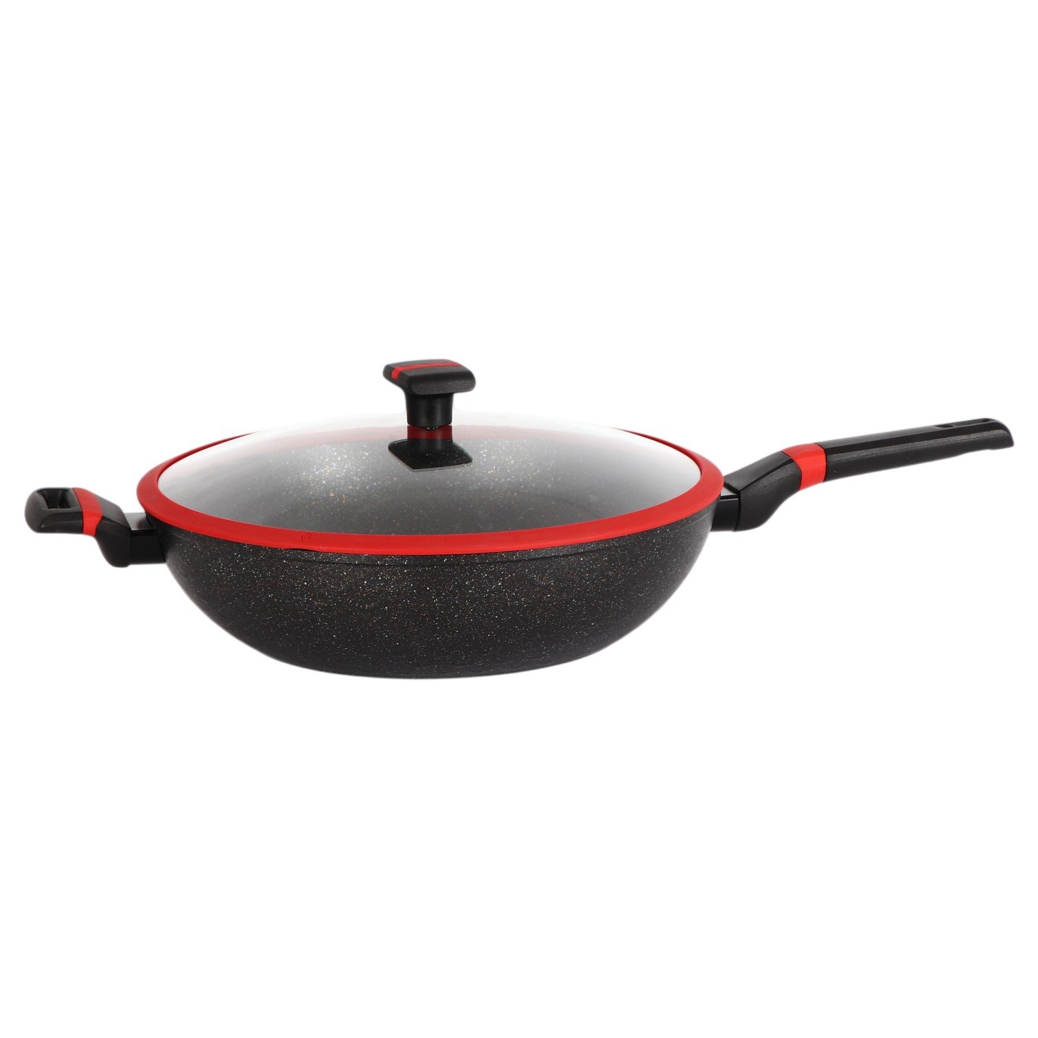 | Descripción | Wok de 34 cm con acabado mármol negro y tapa de cristal. Recubrimiento Greblon®, base turbo inducción y mango Soft Touch. Apto para todo tipo de estufas. |